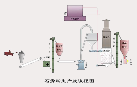 石膏粉磨粉工藝大概由以下幾部分組成,振動(dòng)給料機(jī)-皮帶輸送機(jī)-顎式破碎機(jī)-斗式提升機(jī)-生石膏料倉-電磁振動(dòng)給料機(jī)-磨粉機(jī)-料倉-導(dǎo)熱油爐-沸騰爐-除塵器-提升機(jī)-成品料倉等組成,如下圖所示,整個(gè)磨粉工藝緊密相連,配合工作,讓石膏礦石完成整套磨粉加工工序。目前市場的石膏磨粉工藝自動(dòng)化能力強(qiáng),整條生產(chǎn)線只需幾個(gè)人就能完成磨粉加工流程,與早年的磨粉行業(yè)相比,技術(shù)先進(jìn)很多,而且機(jī)器自動(dòng)化控制讓給料更均勻、有序,磨粉效率更高。石膏磨粉和其他礦石研磨工藝差不多,原理都是大同小異,根據(jù)礦石硬度、粒度及其他物理性質(zhì)的不同,可能配備的礦山設(shè)備略有不同。